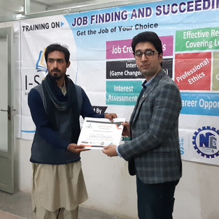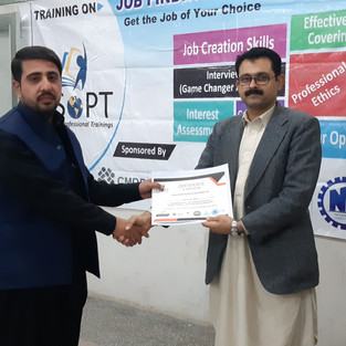 Mr. Muhammad Ibrar, Master Trainer/Educational Consultant/Researcher, for the establishment of I-SoPT in Malakand Division and presenting his session on Job Finding and Creation Techniques